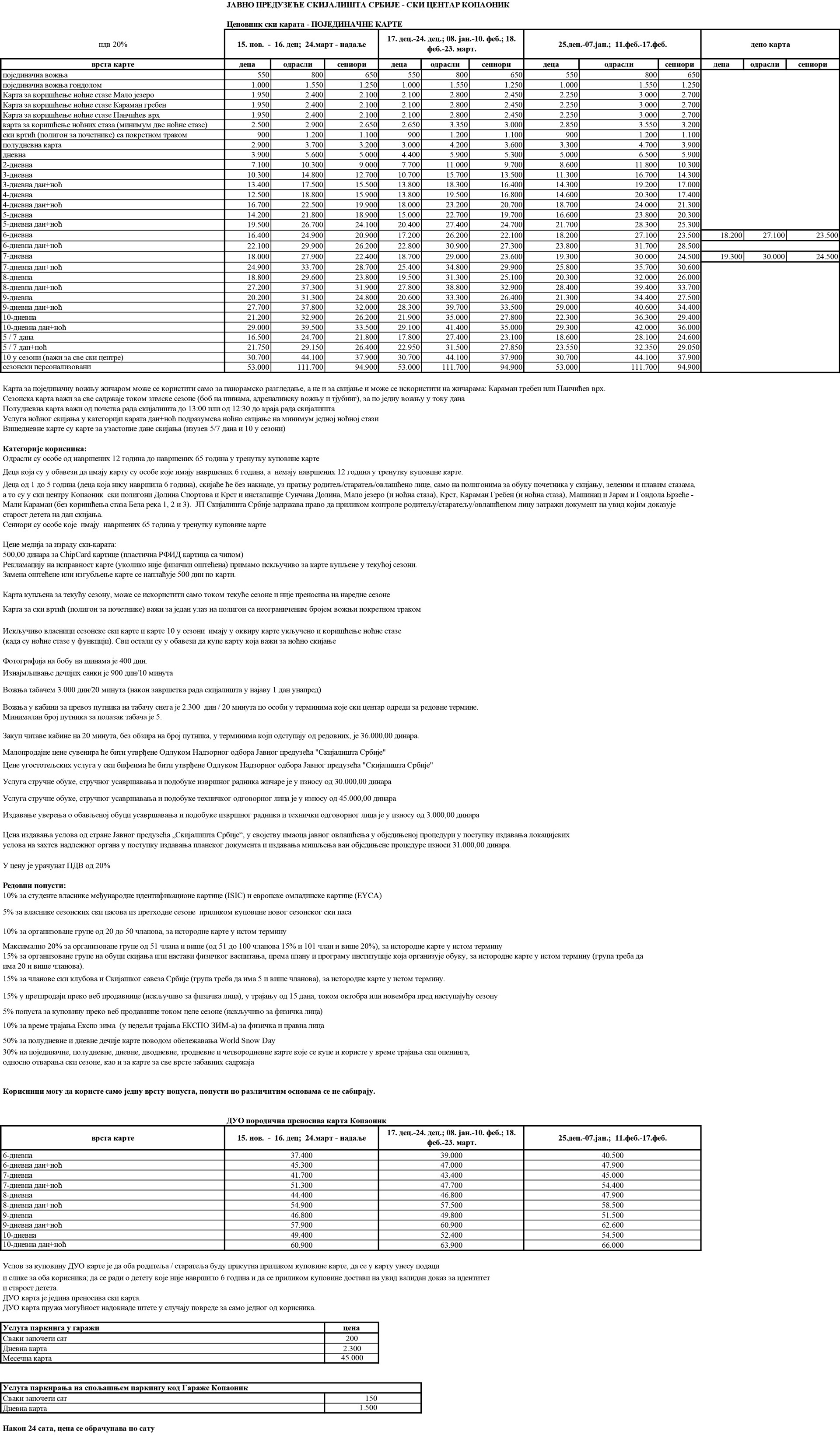 Skijališta Srbije svojim partnerima i uglednim kompanijama nude brojne mogućnosti i pogodnosti za kupovinu ski karte. Slobodni smo da vam ponudimo mogućnost kupovine ski karata putem administrativnih zabrana.