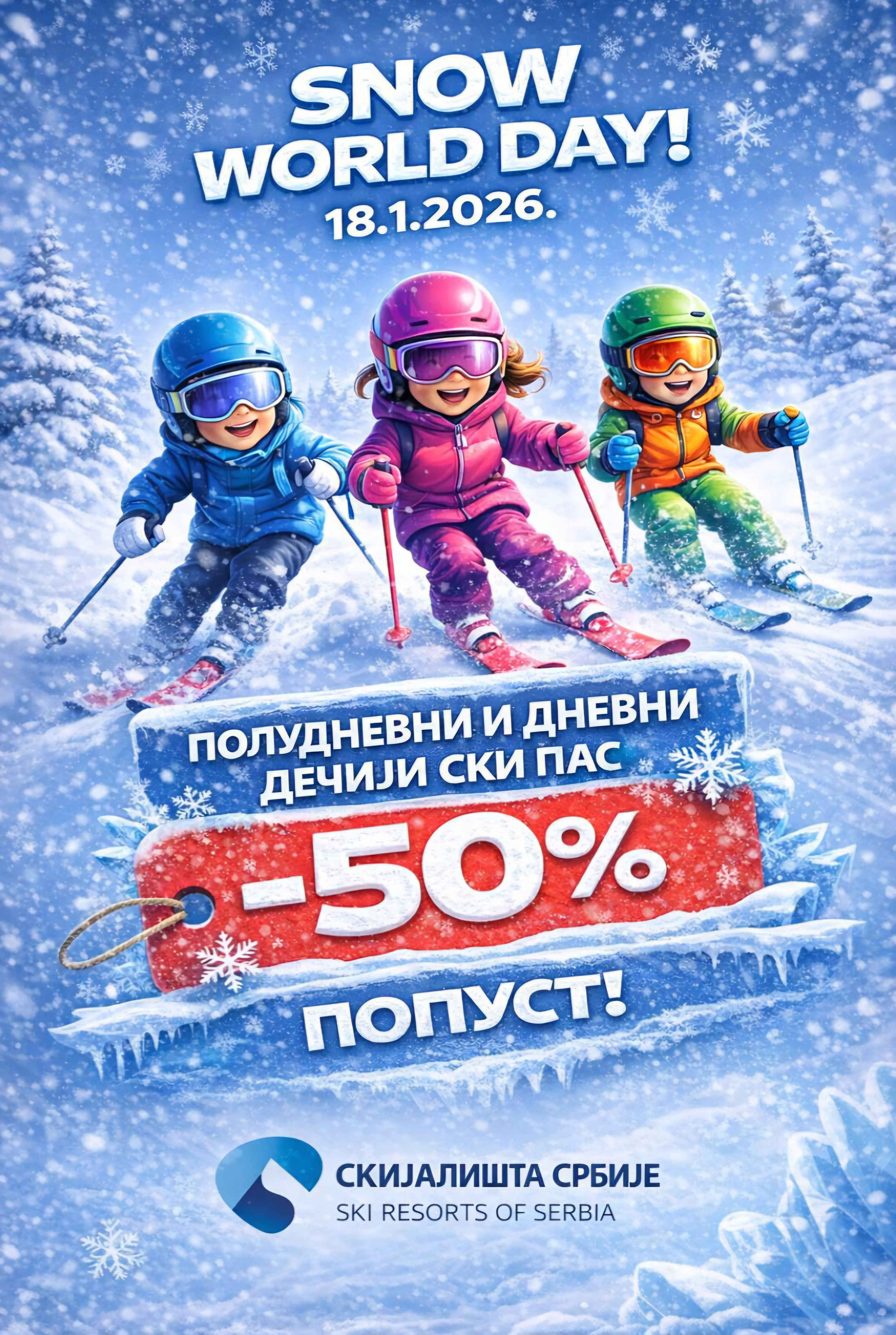 18. Januar- Svetski dan snega- popust od 50% na poludnevne i dnevne dečije ski karte na prodajnim mestima u ski centrima