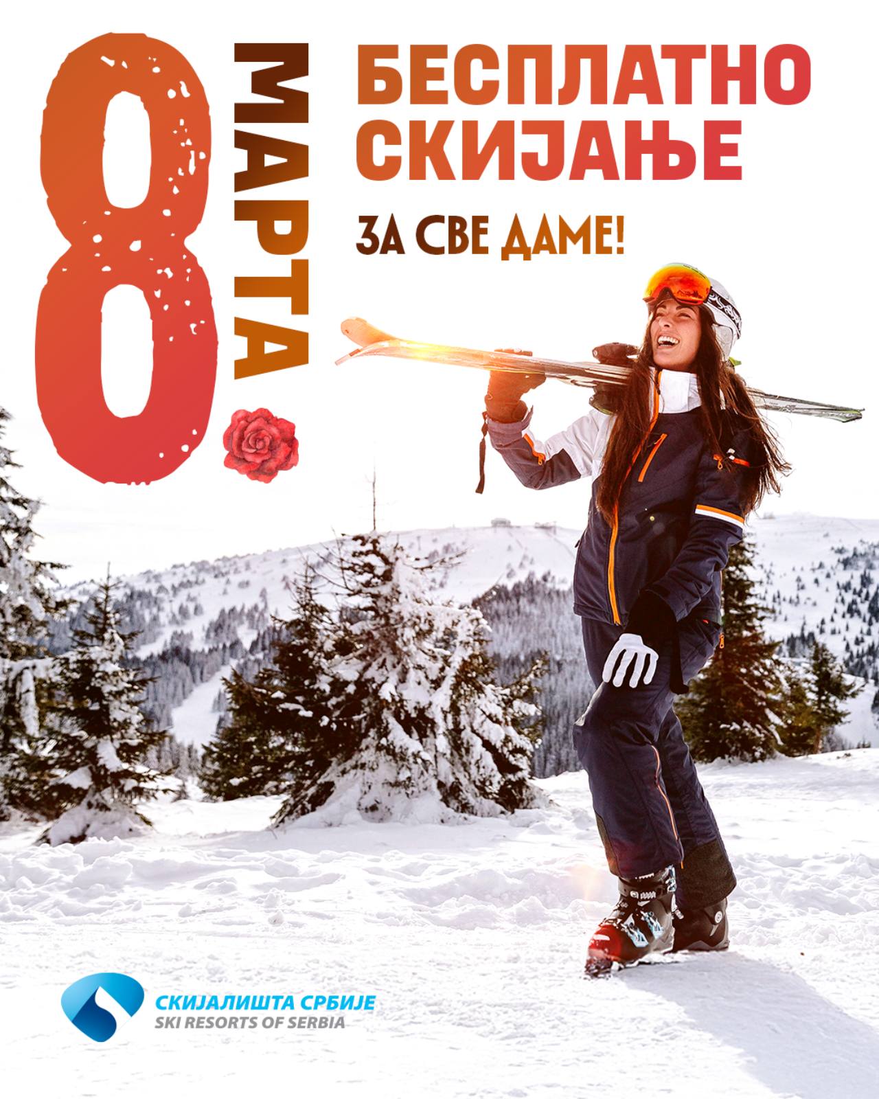 8. marta, povodom praznika Dana žena, Skijališta Srbije poklanjaju svim damama besplatno skijanje u ski centrima Kopaonik, Stara planina i Tornik na Zlatiboru. Karte se mogu preuzeti isključivo na prodajnim mestima u ski centrima.