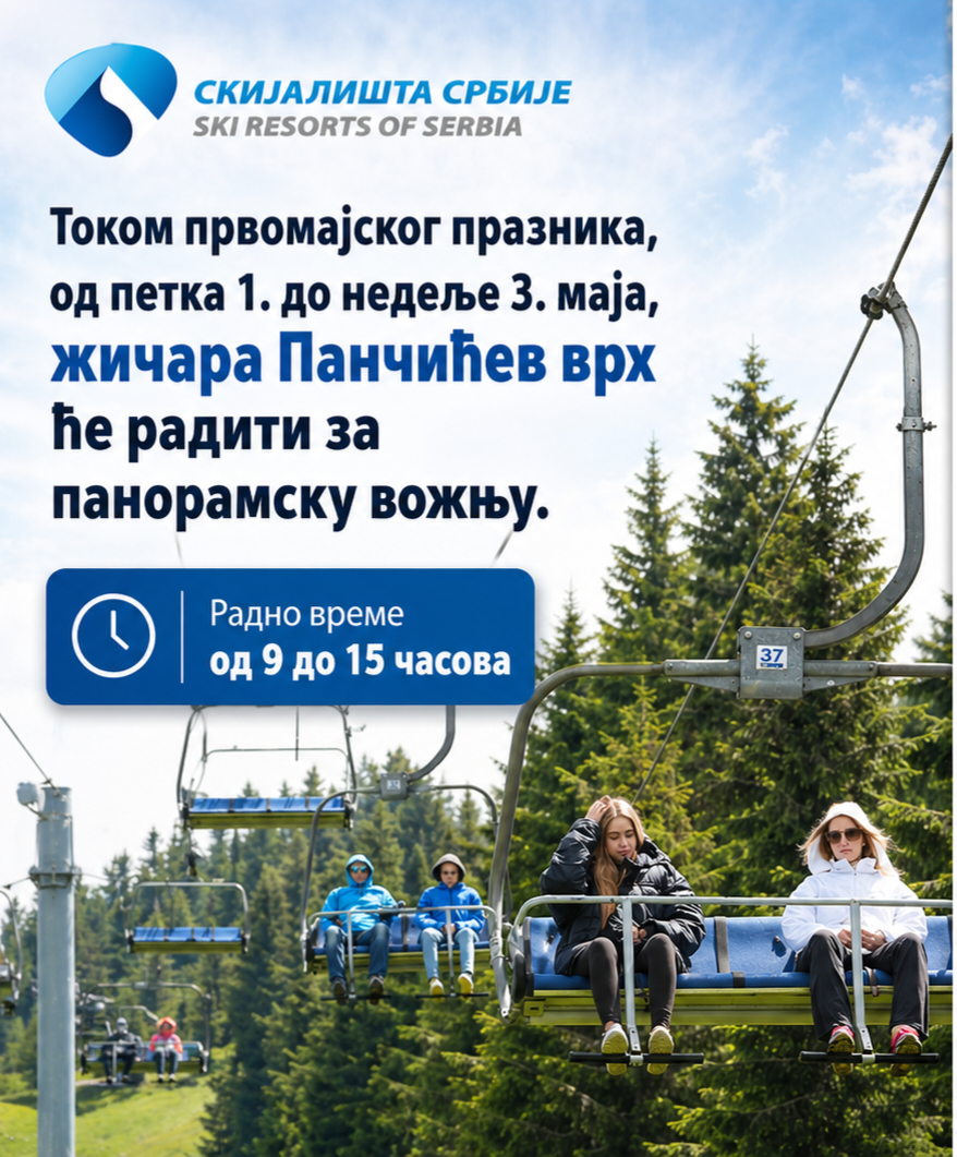 Tokom praznika, od petka 1. do nedelje 3. maja, u ski centru Kopoanik za panoramsko razgledanje radiće žičara Pančićev vrh. Radno vreme će biti od 9 do 15 časova.